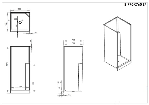 Fibreglass Shower Enclosure 770x760mm